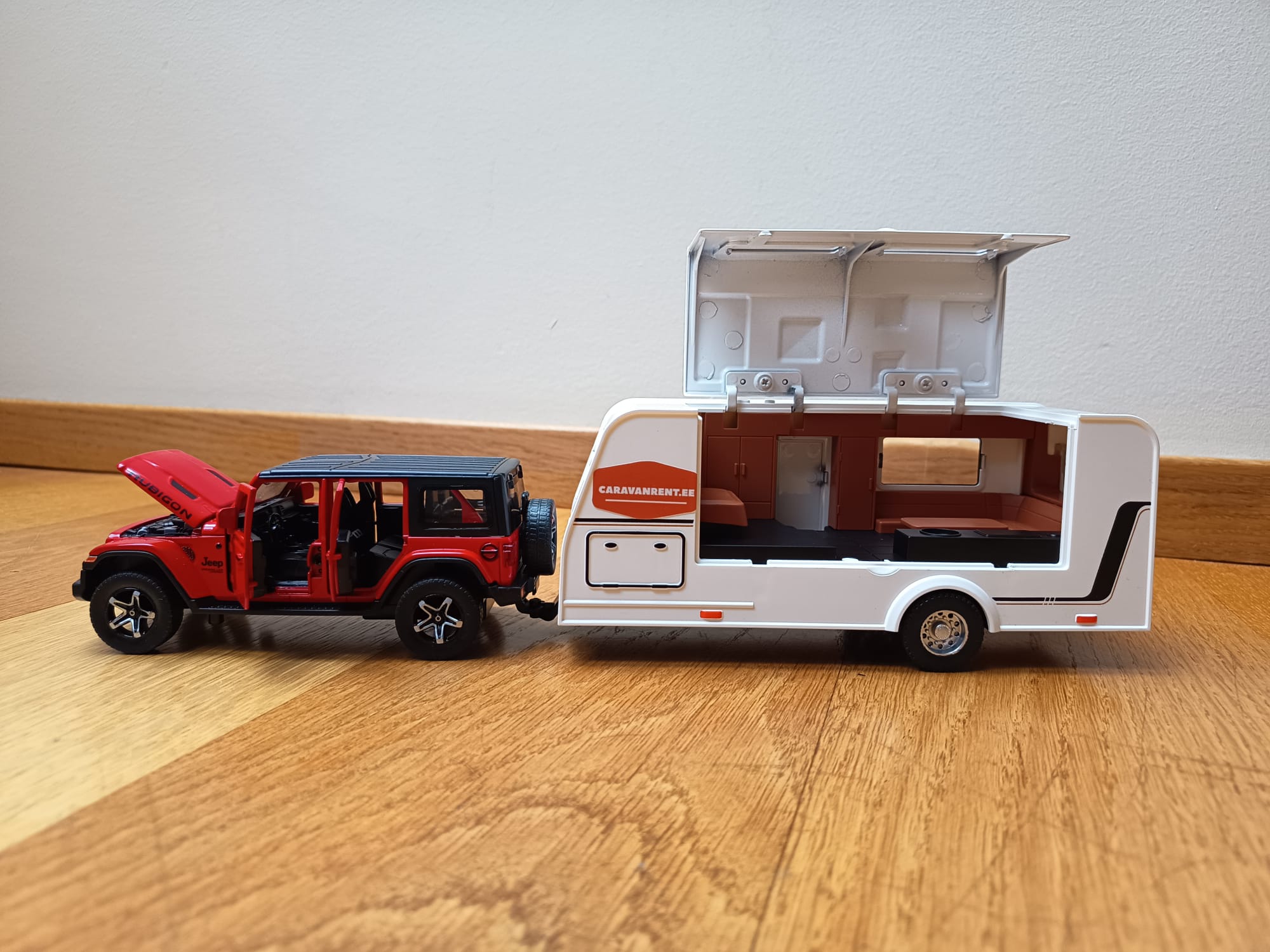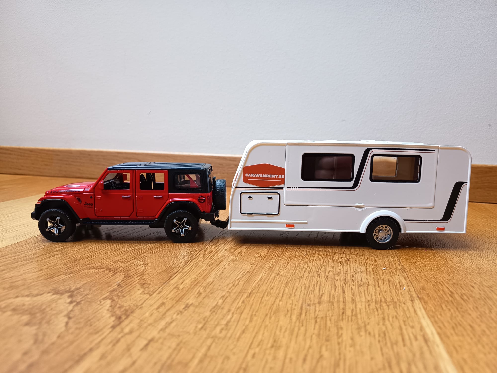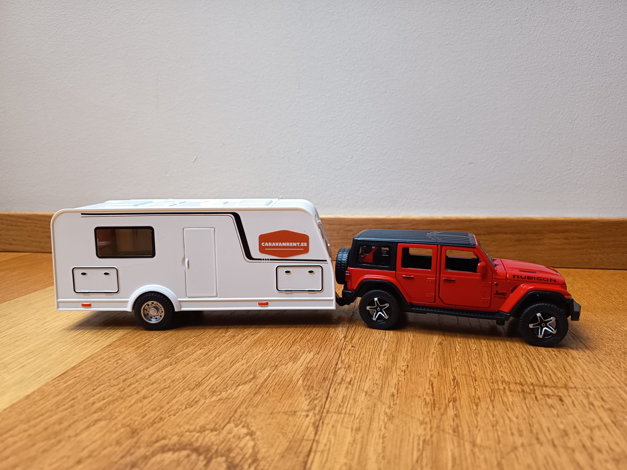 Mudelauto Jeep Wrangler koos haagissuvilaga