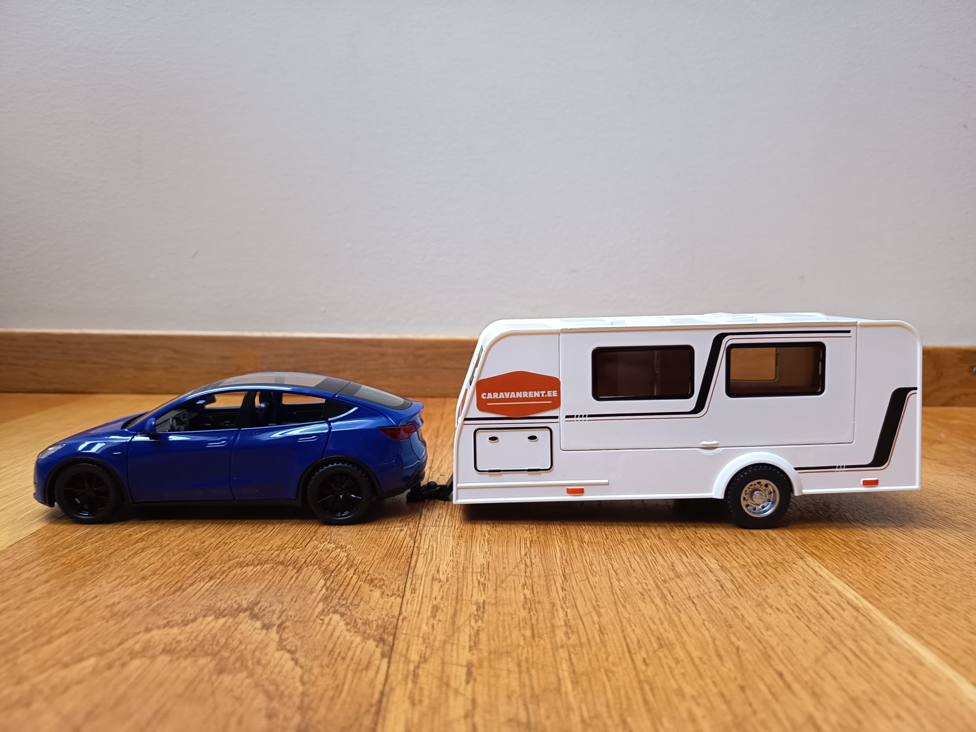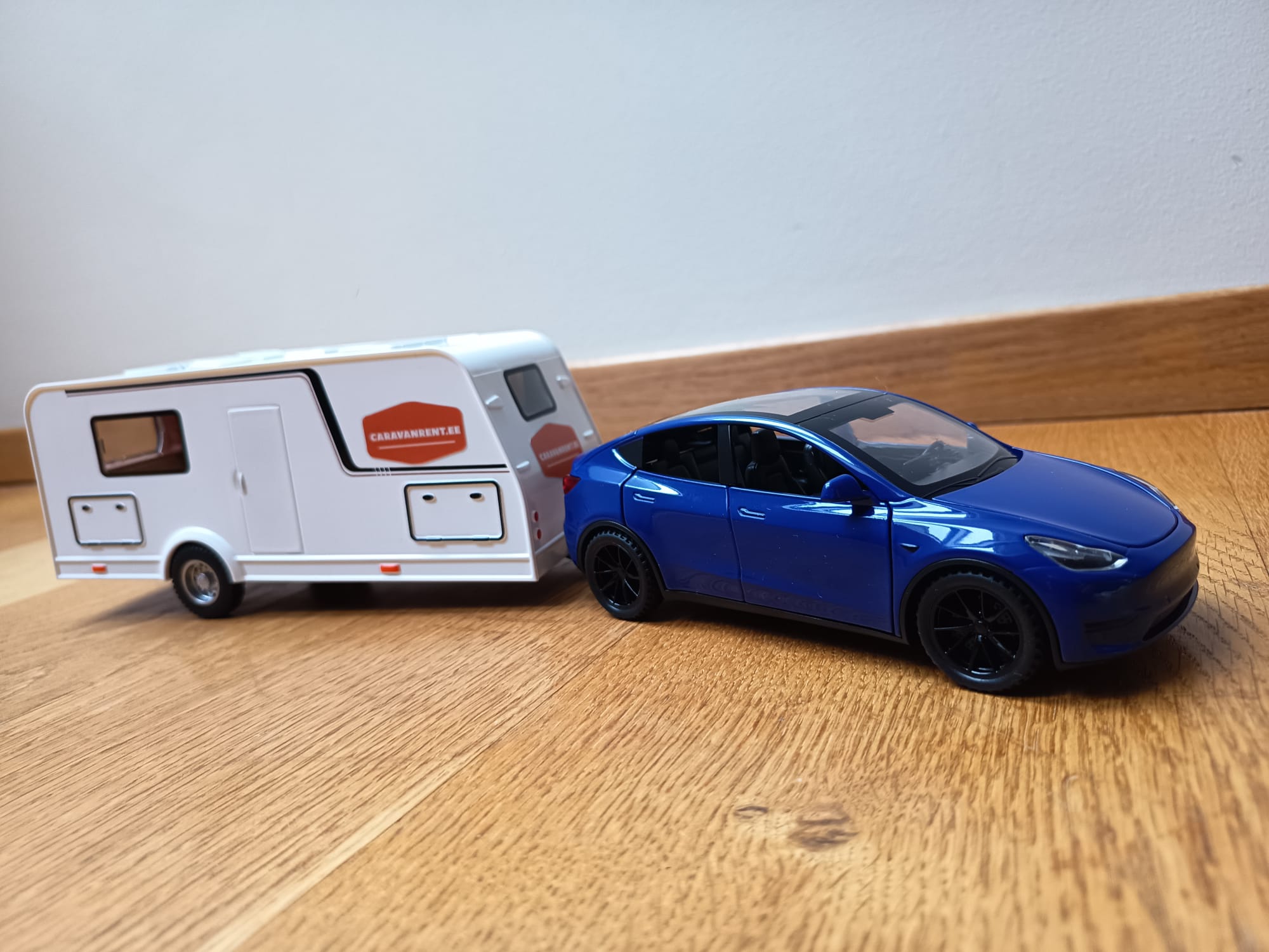 Mudelauto Tesla model Y koos haagissuvilaga